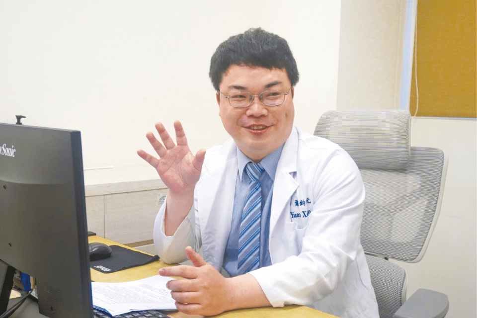 陽光透過綠蔭灑落,靜靜映入在一間窗明几淨、氛圍安定的診間。上診前的空檔,一位神情輕鬆、滿臉微笑的醫師正坐在桌前,開心地書寫著一篇篇醫案心得。他就是人稱「微笑醫師」的大安中醫診所蕭鈞元醫師。